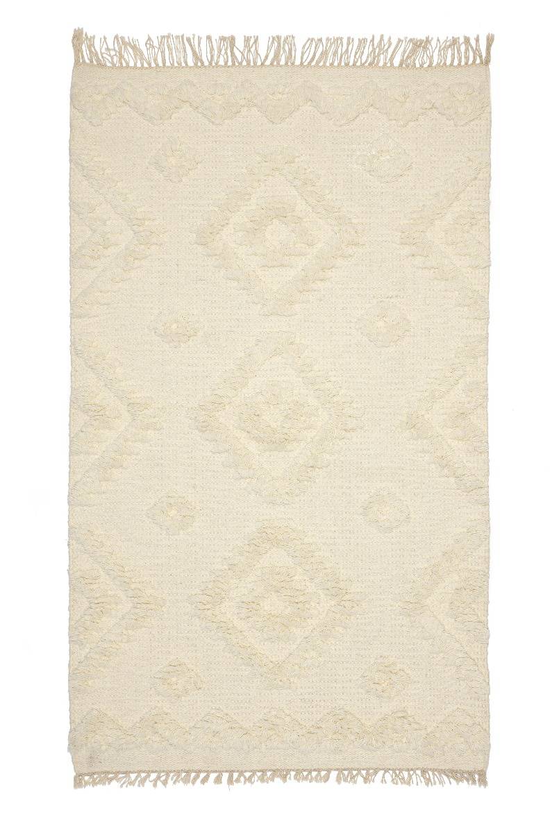 En vacker mönstrad ullmatta i stilren vit färg som utstrålar en elegant, modern och hemtrevlig känsla i ditt hem. Denna matta håller det simpelt men med graciösa mönster som lyfter inredningen i alla hem. Med sin naturliga motståndskraft mot fläckar och smuts, är denna ullmatta enkel att rengöra och hålla i fint skick. Med sin eleganta och moderna look, kommer denna matta bli en favorit i ditt hem!