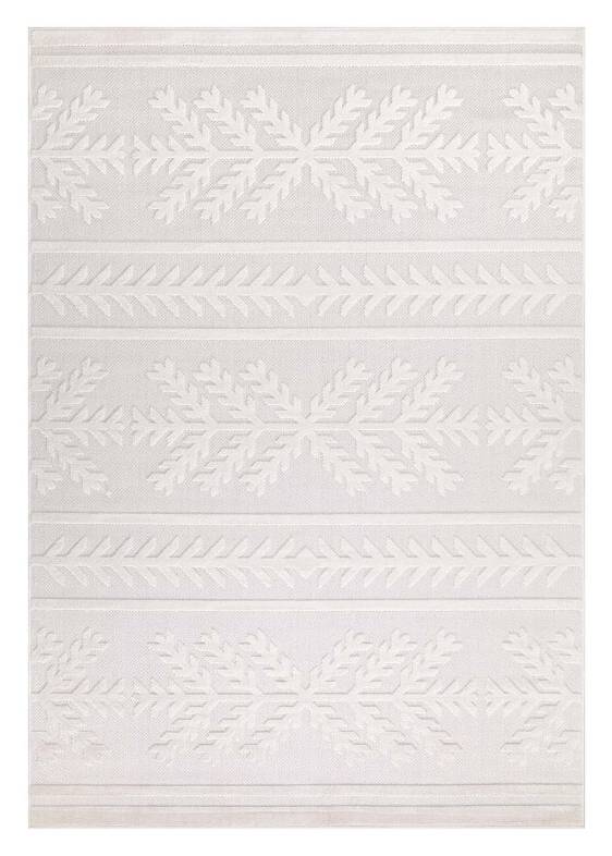 Carlo Vato Kräm Inom- och utomhusmatta är en vacker mönstrad matta som utstrålar en stilren och modern känsla för en snygg inredning. Tillverkad av syntetmaterialet polypropylen som är gynnsamt för allergier mot bland annat pälsdjur. Carlo Vato i krämvit färg är en matta som kan användas både inom- och utomhus eftersom den är slitstark och tålig, samtidigt som dess unika charm utgör en ljus och modern inredning.